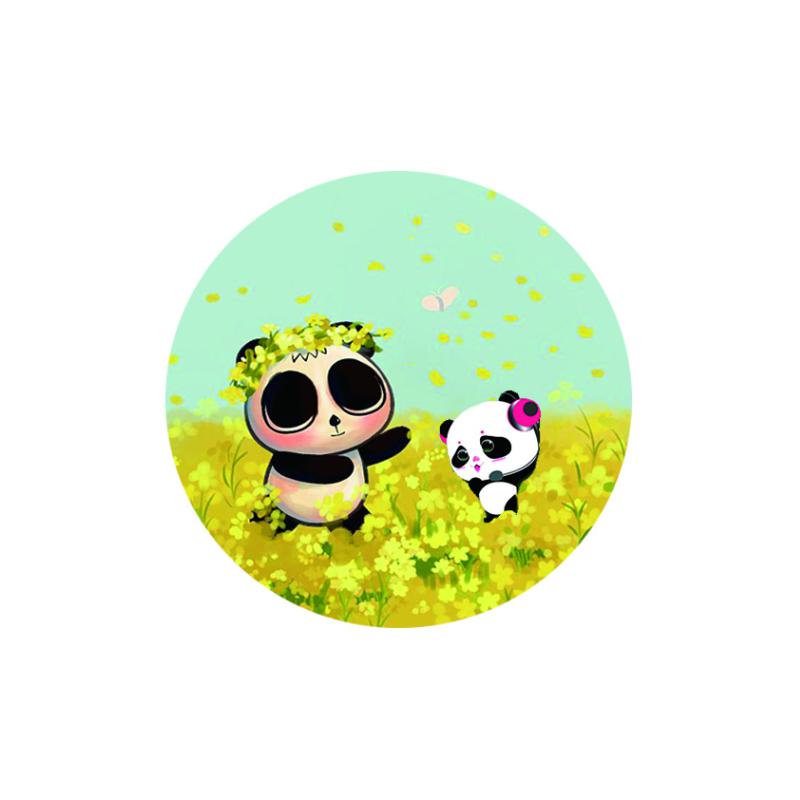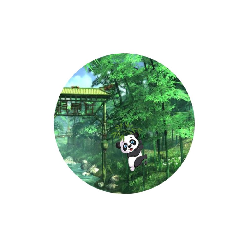 图中一只小熊猫在美丽的景色中被五彩缤纷的热气球带上了天空,画面充满了意境美,给人带来无线的遐想。