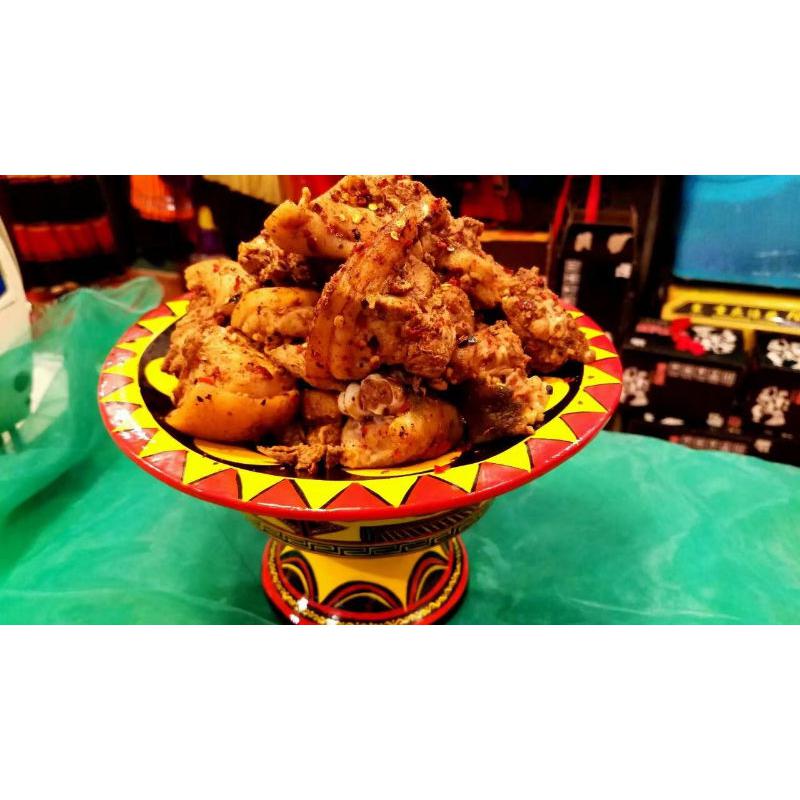 彝族坨坨肉,洋芋坨坨,血肠都是凉山彝族地区最为普遍的一种传统食品,味道鲜美,待客佳品 。凡杀猪宰牛都会切成如拳头船大小的块块,用清水煮至八成熟,洋芋坨坨是凉山传统优势农作物,而血肠也是凉山彝族地区最为普遍的一种食品,凡宰杀过年猪后,都要加工制作血大肠,两头用细绳拴紧,放进开水锅里煮熟后捞起,待稍冷后切成小节食用。