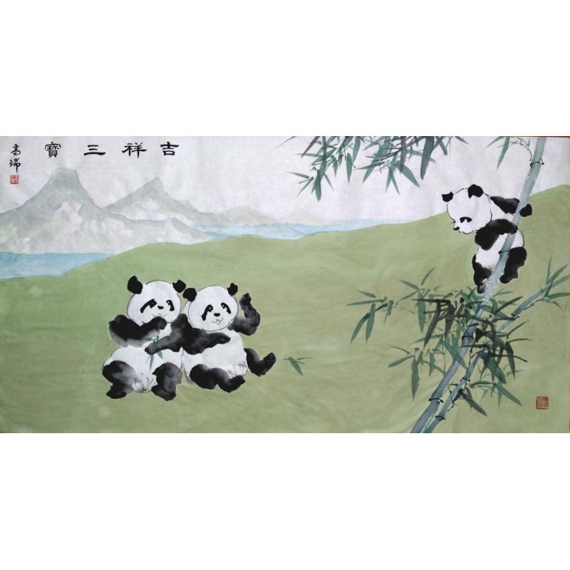 自创熊猫诗意画《吉祥三宝》
