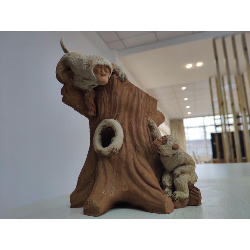 双猴戏春笔筒