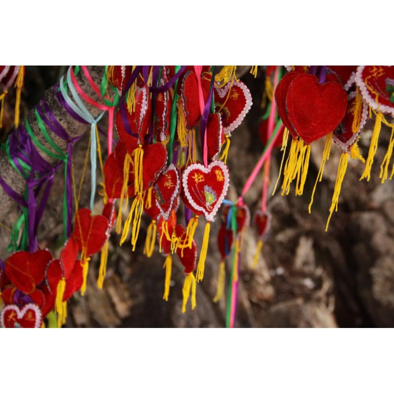 在四川与云南交界的地区,每当有人经过这棵大树,总会在上面挂上一个爱心香囊,表达了远行对家人的牵挂,希望自己平平安安,当我看到这飘荡的爱心,尤其这一颗爱心背对着所有的爱心,却面朝我时,心中涌现出许多感触,便按下了快门。