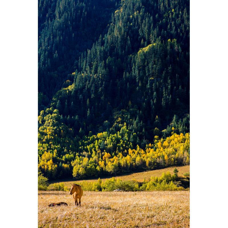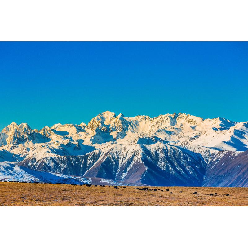 出甘孜县城不远翻过一个垭口就能看见雄伟连绵的山峰,天公作美,山上覆满了白雪,山下一群群牦牛缓缓移动,很冷,手很僵,单我还是按下了快门,一切刚好。