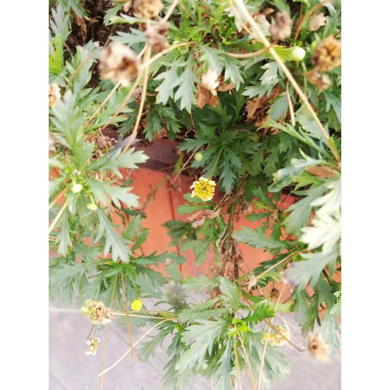 在寒冷的秋季,花朵微微枯萎,却形成了一个花环,而中间的小花,象征着新鲜的生命。