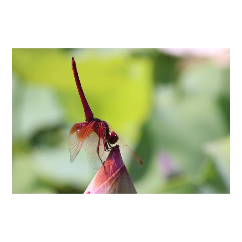 蜻蜓与荷花之吻,害羞的荷花微微泛红,又好似蜻蜓讲自身红色慢慢渲染到了荷花身上。