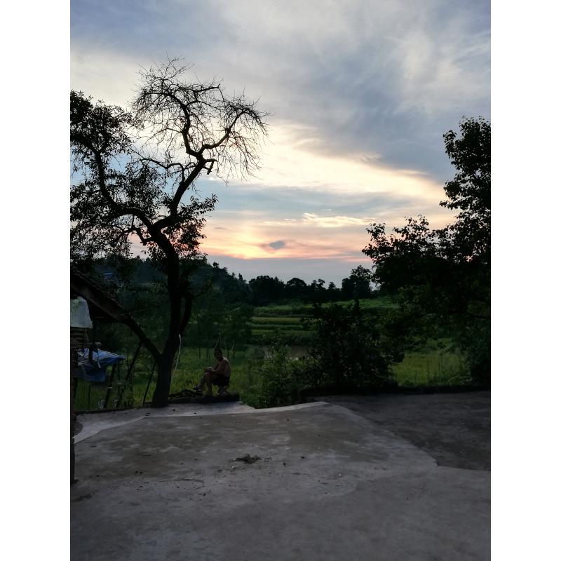 夏末秋初,秋老虎卷土而来,本来有一点凉爽的天气又变得更加炎热,吃完晚饭后太阳依旧没有下山,劳累了一天的老人在树下乘凉,李子树上被干死的枯树枝在残阳余晖下似乎诉说着炎热