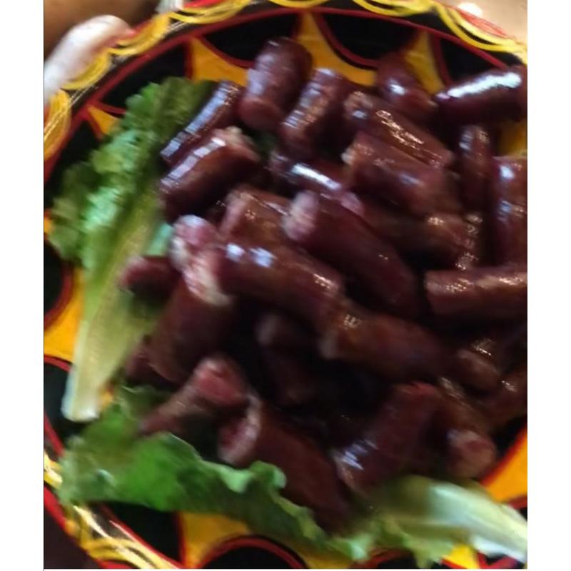 彝族坨坨肉,洋芋坨坨,血肠都是凉山彝族地区最为普遍的一种传统食品,味道鲜美,待客佳品 。凡杀猪宰牛都会切成如拳头船大小的块块,用清水煮至八成熟,洋芋坨坨是凉山传统优势农作物,而血肠也是凉山彝族地区最为普遍的一种食品,凡宰杀过年猪后,都要加工制作血大肠,两头用细绳拴紧,放进开水锅里煮熟后捞起,待稍冷后切成小节食用。