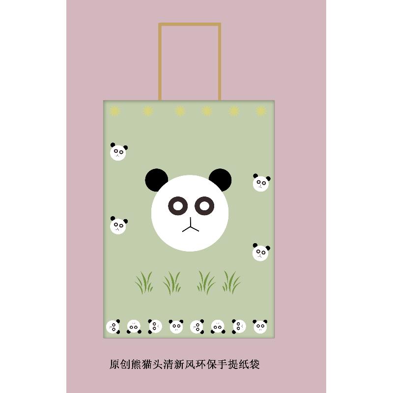 原创熊猫头清新风环保手提纸袋