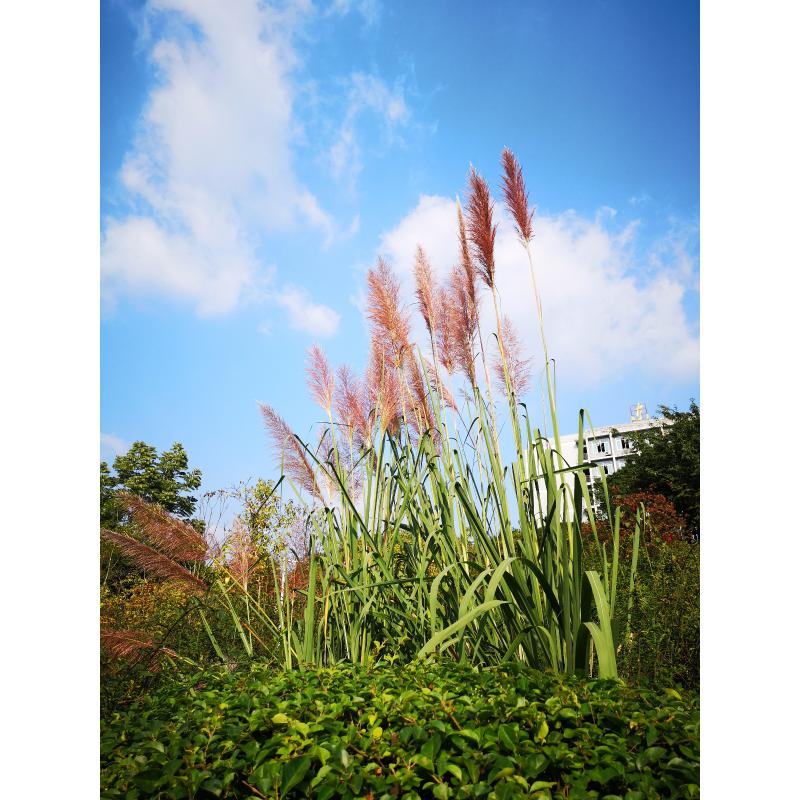 蓝天,白云,绿叶,红穗